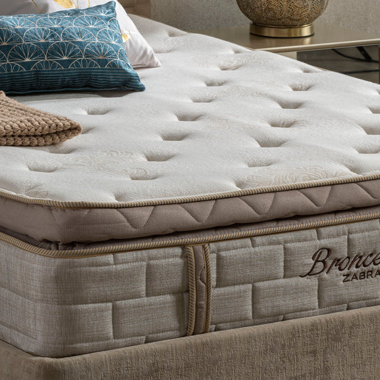 Colchón Bronce 2.00 Ortopédico Zabra con un elegante estilo Euro-top en un lado (no reversible), elaborado con espumas de alta densidad para brindar un confort excepcional. Fabricado con telas de alta calidad para una experiencia de descanso superior.