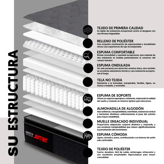 Colchón King con tecnología avanzada y confort de lujo: Diseñado para tu comodidad, es fácil de transportar y listo para usar en minutos gracias a su práctico formato enrollable. Sus resortes Pocket encapsulados se adaptan a tu cuerpo, aliviando presión, mientras el Eurotop acolchado ofrece suavidad envolvente. Su diseño minimiza la transferencia de movimiento, asegurando un descanso sin interrupciones, ideal para quienes comparten la cama. Fabricado con materiales de alta calidad, garantiza durabilidad y respaldo por 9 años.