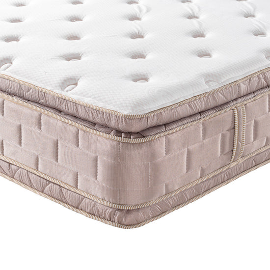 Descansa con el máximo confort del Colchón Aurora Beige. Su Doble Pillow Top brinda suavidad superior, mientras su unidad resortada ofrece firmeza ortopédica para un soporte ideal de la columna. Fabricado con espuma de alta resistencia y un diseño elegante en tono beige que combina estilo y durabilidad.