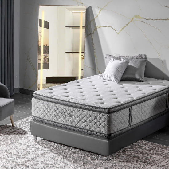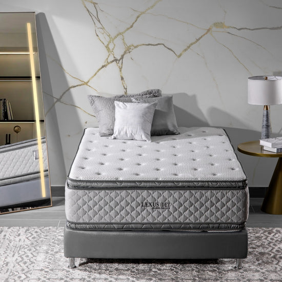 Colchón ortopédico resortado, estilo Euro Top por ambos lados. Reforzado con espumas de alta densidad que brindan un soporte excepcional al cuerpo