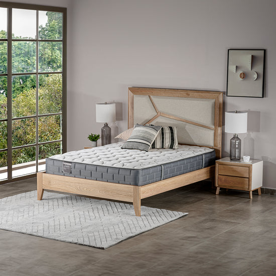 Acompaña tu cama queen con Colchón ortopédico resortado con sistema de amortiguación de 3 zonas, con mayor calibre en la zona central para un mejor nivel de soporte y durabilidad