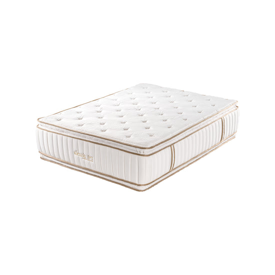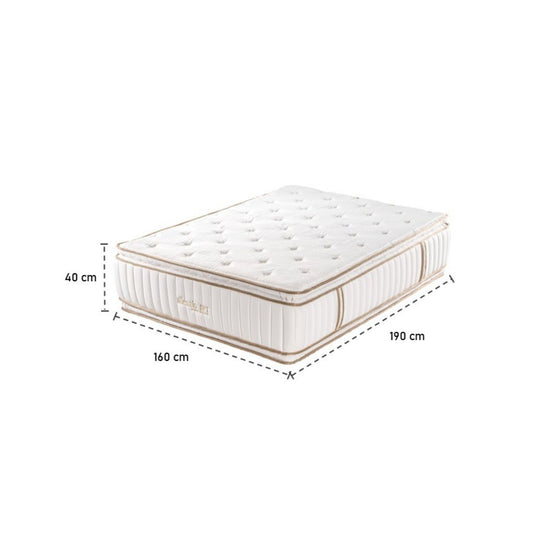 Colchón doble Pillow Top con doble capa de memory foam, tela Jacquard y 2 almohadas Solid Visco. Se adapta al cuerpo para ofrecer un soporte preciso y una sensación envolvente de confort. Diseñado para promover un descanso profundo y revitalizante cada noche.