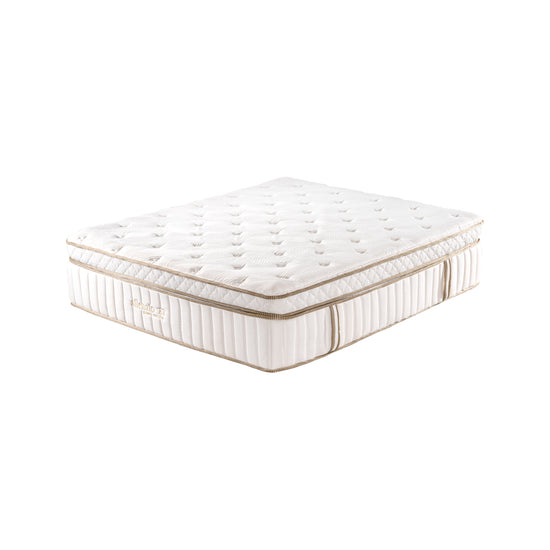 Colchón Euro Top con estructura mini pocket que reduce la transferencia de movimiento y unidad central pocket reforzada con espuma perimetral para evitar deformaciones. Tapizado en tela Jacquard con tratamiento Purotex, incluye 2 almohadas Solid Visco. Se adapta al cuerpo brindando soporte preciso e ideal para un descanso profundo y revitalizante.