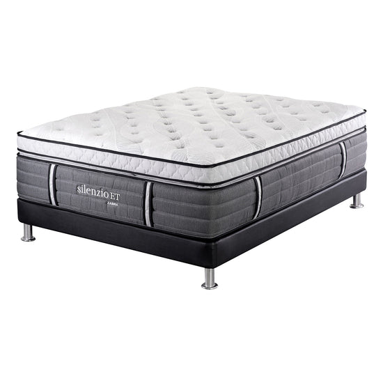 Colchón Doble con resortes encapsulados tipo pocket, tanto en el Euro top como en su núcleo central, los cuales evitan la transferencia de movimiento. Ideal para usar con camas Queen.