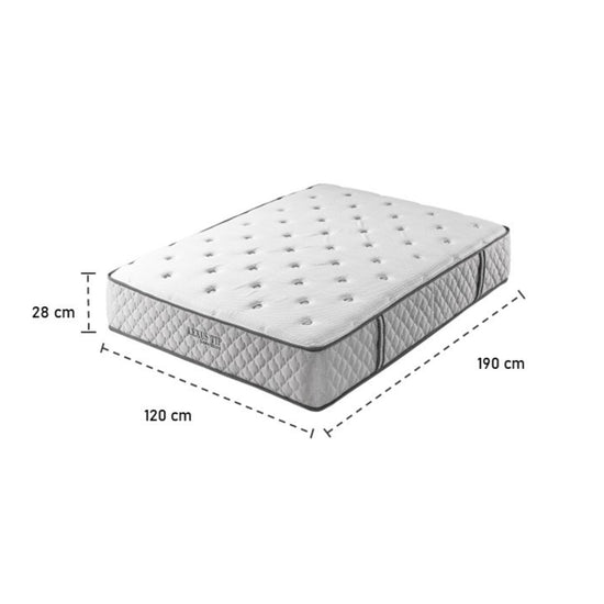 Colchón ortopédico resortado con sistema de amortiguación de 3 zonas, con mayor calibre en la zona central para un mejor nivel de soporte y durabilidad. Ideal para camas Semi doble.
