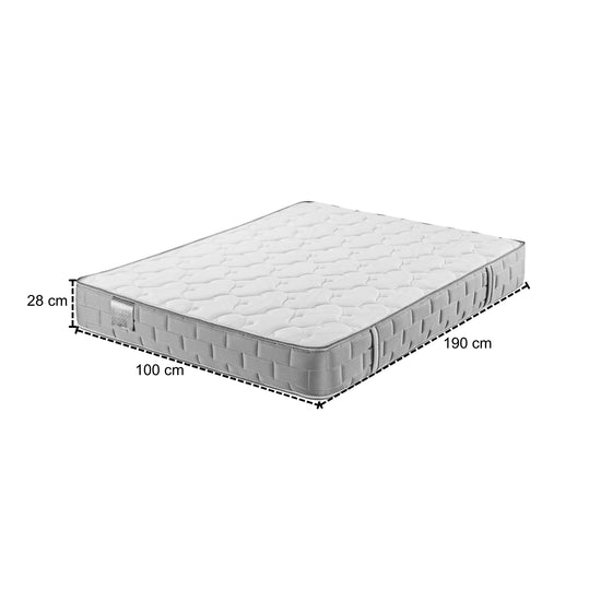 Colchón ortopédico resortado con sistema de amortiguación de 3 zonas, con mayor calibre en la zona central para un mejor nivel de soporte y durabilidad