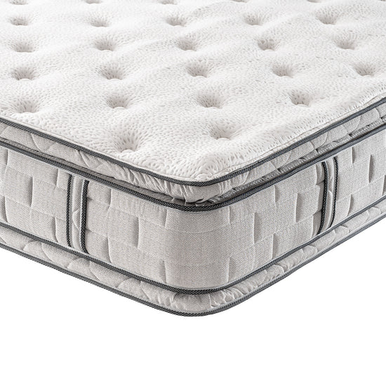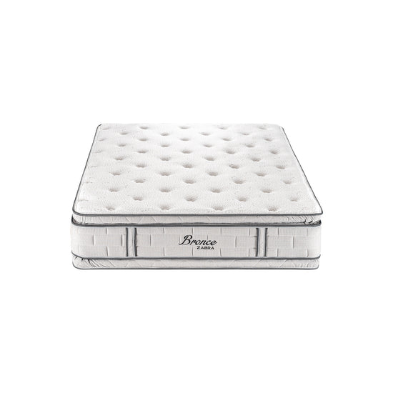 Colchón Bronce con sistema pillow top en ambas caras, que permite mas confort y comodidad. Estructura interna con resorte con alto contenido en carbono para mayor durabilidad y tela en jacquard que oferce frescura y durabilidad.