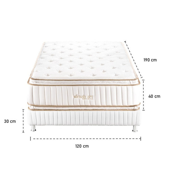 Descubre el equilibrio perfecto entre confort y elegancia con el combo Silenzio Deluxe Doble Pillow Top Semi Doble. Su colchón con unidad de resortes Pocket y espuma viscoelástica se adapta a tu cuerpo para brindar soporte anatómico y descanso profundo. Incluye base cama en madera con patas cromadas y una suave almohada. Garantía de 15 años.