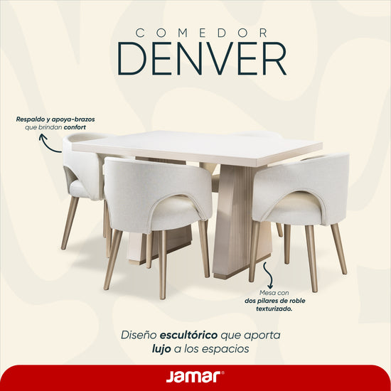 Este elegante comedor de 4 puestos combina diseño contemporáneo con materiales de alta calidad. Su estructura en madera roble garantiza resistencia y durabilidad, mientras que el acabado en pintura poliuretano proporciona un acabado suave y sofisticado. Las sillas tapizadas en tonos neutros y patas en roble complementan perfectamente la mesa central de líneas modernas, ideal para espacios que buscan estilo y funcionalidad.