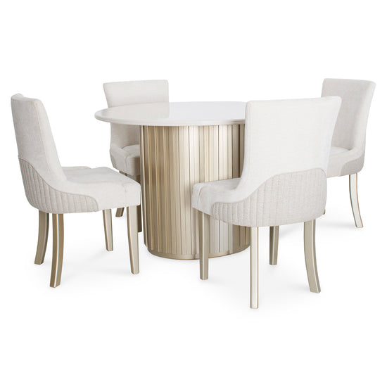 El Comedor 4 Puestos Firence es la opción perfecta para quienes buscan un ambiente elegante y sofisticado en su hogar. Inspirado en el estilo glam, este comedor destaca por su diseño refinado y materiales de alta calidad. Su estructura está recubierta con pintura poliuretano, que brinda un acabado lujoso y mayor resistencia, mientras que sus sillas tapizadas en tela tipo velvet suave al tacto ofrecen una experiencia de confort inigualable.