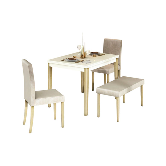 El comedor de 4 puestos combina elegancia y sofisticación, con tapizado en tela de alto lujo que proporciona un tacto suave excepcional. Su estructura robusta está elaborada en madera de roble, garantizando resistencia y alta durabilidad. Es perfecto para crear un ambiente refinado y duradero en cualquier hogar contemporáneo.