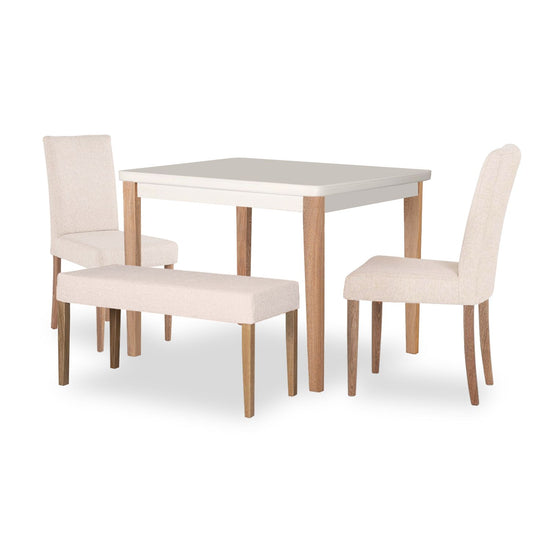 El comedor Line 4 puestos en Beige presenta un diseño sofisticado con estructura en madera roble y acabado en pintura poliuretano. Su tapizado en tela velvet es suave al tacto, fácil de mantener , amigable con las mascotas. Este comedor es ideal para espacios modernos y hogares con mascotas.