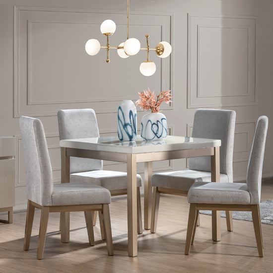 Dale un toque sofisticado y moderno a tu hogar con el Comedor Walcot de 4 puestos. Su diseño minimalista, combinado con materiales de alta calidad, lo convierte en la opción ideal para quienes buscan estilo y funcionalidad. La mesa con acabado en pintura poliuretano ofrece una superficie resistente y de fácil mantenimiento, mientras que las sillas brindan una comodidad excepcional