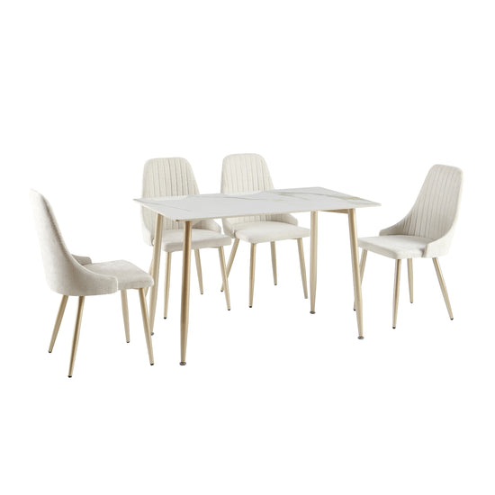 Vive los mejores momentos con nuestro comedor de 4 puestos con elegante base de vidrio y sillas tapizadas con líneas, ideal para espacios reducidos. Su diseño funcional añade estilo a tu hogar, ofreciendo un conjunto acogedor y versátil.