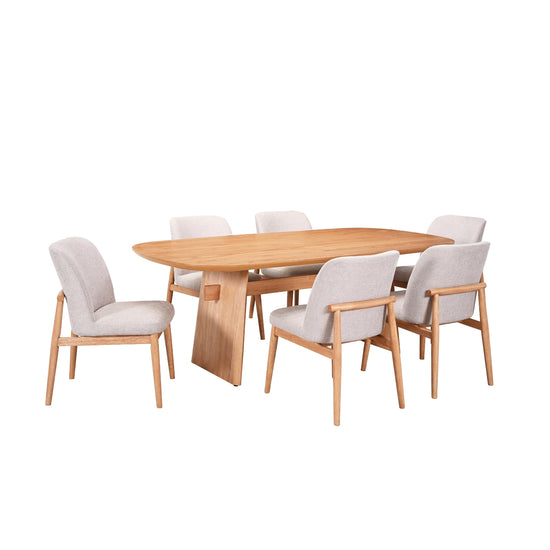 El comedor 6 puestos Cameron Gris, Natural es perfecto para quienes buscan una mezcla de elegancia y modernidad. La estructura de madera natural combinada con el tapizado gris crea un espacio sofisticado y acogedor. Ideal para cenas familiares o reuniones con amigos, su diseño robusto y elegante se adapta a cualquier estilo de decoración.