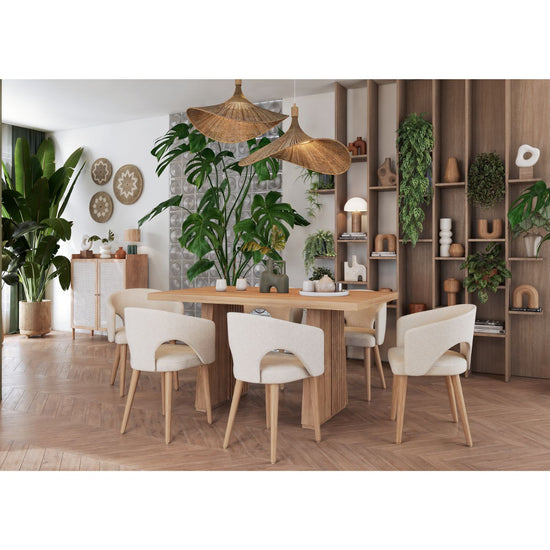 Invita a la elegancia natural a tu hogar con el Comedor Denver, con estructura elaborada en madera de roble. Mesa robusta y espaciosa acompañada de sillas tapizadas en tela suave y neutra, que prometen confort y durabilidad. Este comedor combina la calidez del roble con un diseño moderno que realzará cualquier espacio de comedor.
