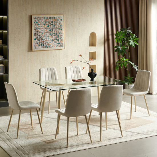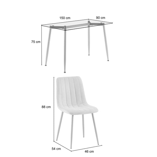 Vive los mejores momentos con nuestro comedor de 4 puestos con elegante base de vidrio y sillas tapizadas con líneas, ideal para espacios reducidos. Su diseño funcional añade estilo a tu hogar, ofreciendo un conjunto acogedor y versátil.
