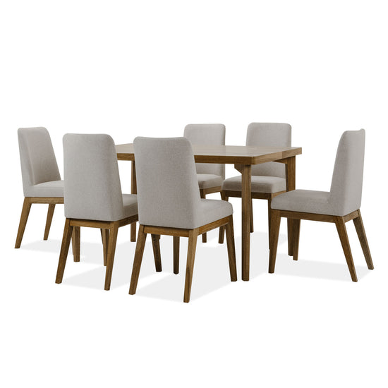Este elegante juego de comedor Montana 6 puestos combina la calidez de la madera de roble con la sofisticación . La mesa, con una robusta cubierta de madera industrial, y las sillas, tapizadas en tela de lino suave, proporcionan tanto confort como durabilidad. Perfecto para cualquier espacio que busque un estilo clásico con un toque de modernidad
