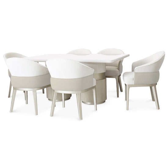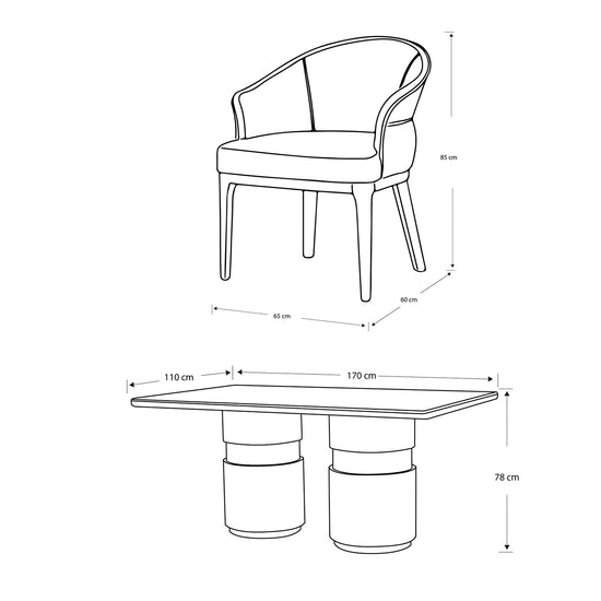 Diseño sofisticado con materiales de alto nivel. El comedor Firence está compuesto por una imponente mesa con estructura y cubierta en madera, acabada en pintura poliuretano que brinda un acabado elegante, resistente y fácil de limpiar. Su base cilíndrica con textura acanalada añade carácter y modernidad al espacio.Incluye seis sillas tapizadas en tela Eurolino de fácil limpieza, que combinan durabilidad y resistencia.