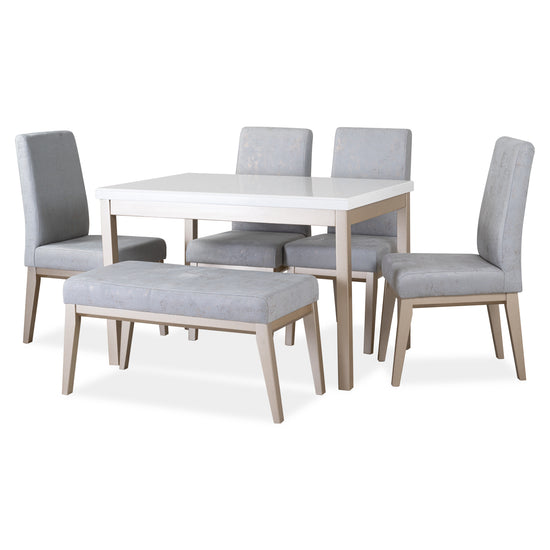 El comedor de 6 puestos Walcot Velvet Mussi Gris presenta un diseño elegante y sofisticado, con tapizado en tela de alto lujo que ofrece un tacto suave excepcional. Su estructura está elaborada en madera de roble, asegurando resistencia y alta durabilidad, ideal para crear un ambiente refinado y duradero en cualquier hogar.
