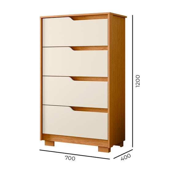 Dale un toque de elegancia y funcionalidad a tu habitación con la Cómoda de 4 Cajones, un mueble diseñado para optimizar el espacio sin sacrificar estilo. Elaborada en MDP con acabado en pintura UV, ofrece un diseño moderno y resistente, ideal para cualquier ambiente. Sus 4 gavetas con correderas telescópicas permiten un deslizamiento suave y seguro, facilitando el almacenamiento de ropa, accesorios y más