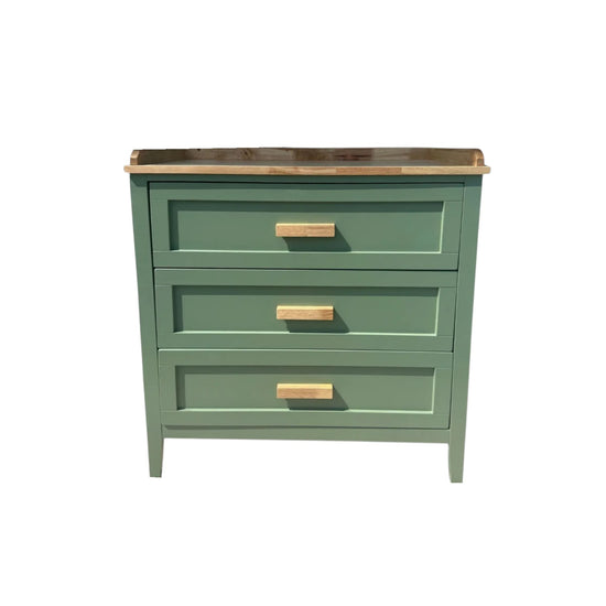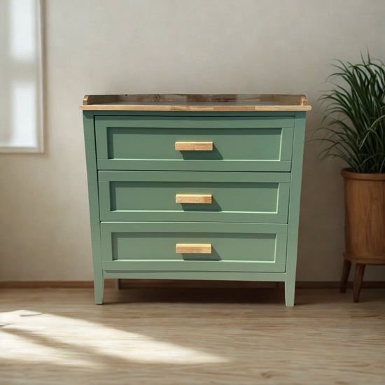 Añade personalidad y calidez a tu espacio con la Cómoda Cannes Verde. Su estructura en madera con acabado verde oliva mate transmite serenidad y estilo natural. Los tiradores y cubierta en tono madera aportan contraste y carácter artesanal. Con tres cajones espaciosos, es perfecta para mantener el orden con encanto. Ideal para dormitorios o recibidores con un toque acogedor y elegante.