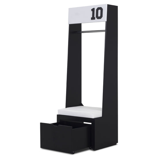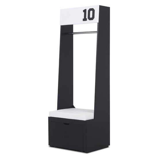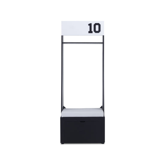 Ropero para habitación infantil, fabricado en madera de roble, pintura resistente, de fácil limpieza, diseño deportivo de fútbol, con tubo para la ropa en esquema abierto.