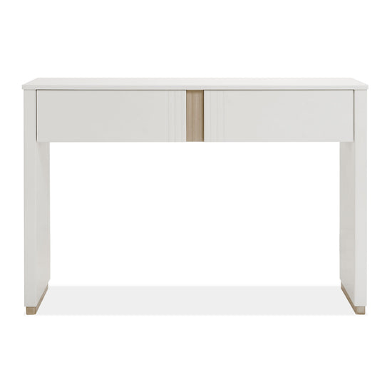 Nuestra consola diseñada para exhibir tus accesorios favoritos, ya sea una colección de libros, piezas de arte o portaretratos. Sus dos amplias gavetas te brindan un espacio adicional para guardar objetos de forma ordenada y fuera de la vista, manteniendo tu sala organizada y libre de desorden. Pintura poliuretano que ofrece durabilidad y resistencia a la humedad.