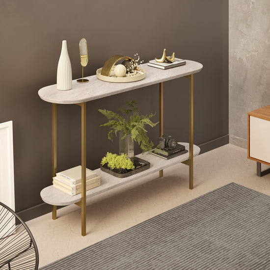 Consola elaborada en madera industrializada de pino (MDF), en pintura UV que garantiza su durabilidad y resistencia.Sus patas metalicas cuentan con pintura epoxica para mayor resistencia. Con un elegante diseño que añade un toque de sofisticación y estilo a tu hogar. Esta consola es perfecta para complementar cualquier espacio con su funcionalidad y elegancia. Transporte y Armado gratis.