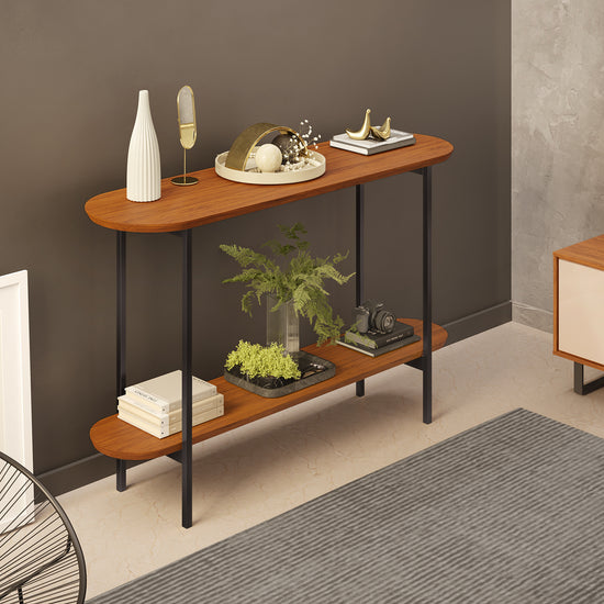 Consola elaborada en madera industrializada de pino (MDF), en pintura UV que garantiza su durabilidad y resistencia.Sus patas metalicas cuentan con pintura epoxica para mayor resistencia. Con un elegante diseño que añade un toque de sofisticación y estilo a tu hogar. Esta consola es perfecta para complementar cualquier espacio con su funcionalidad y elegancia. Transporte y Armado gratis.