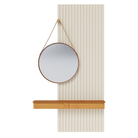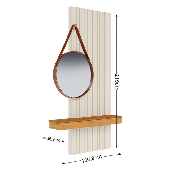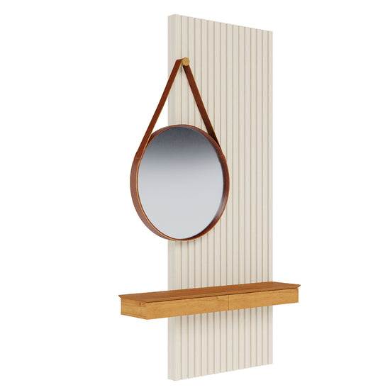 Agrega elegancia y funcionalidad a tu espacio con nuestro espejo decorativo de diseño contemporáneo. Su marco redondo está finamente recubierto en Eurocuero, brindando un acabado sofisticado y moderno.Incluye un resistente soporte en madera que facilita su instalación en la pared, además de todos los accesorios necesarios para su montaje. Ideal para recibidores, pasillos, dormitorios o cualquier ambiente que busque un toque de estilo y calidez natural.