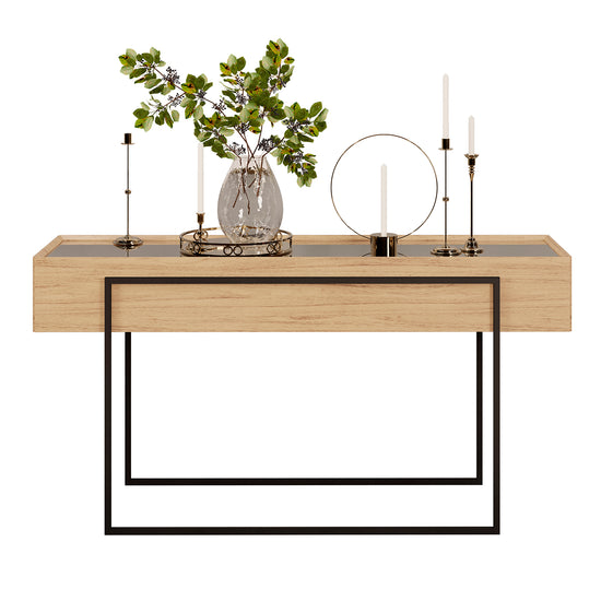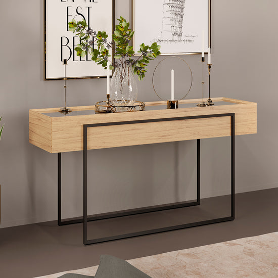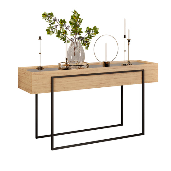 Consola con cubierta en espejo que aporta un estilo elegante y moderno. Estructura en tablero MDF/MDP de pino y base en metal que le dá una impresión sofisticada a tu sala.