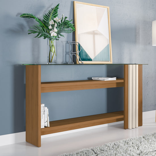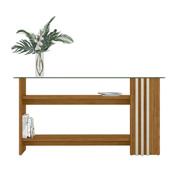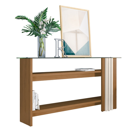 Eleva la elegancia de tu hogar con la Consola Luka en tonos Natural y Off White. Esta pieza está elaborada con madera industrializada de pino (MDF/MDP) y recubierta con pintura UV, brindando una protección adicional contra los rayos solares y asegurando su aspecto impecable a lo largo del tiempo. El vidrio incorporado añade un toque moderno y sofisticado, complementando cualquier decoración existente. Con su diseño estilizado y acabados de alta calidad, esta consola es la elección perfecta para aportar distinción a tu sala de estar, añadir un elemento llamativo a tu pasillo o crear un ambiente refinado en tu entrada. Además, su espaciosa superficie y compartimentos de almacenamiento proporcionan funcionalidad sin sacrificar el estilo.