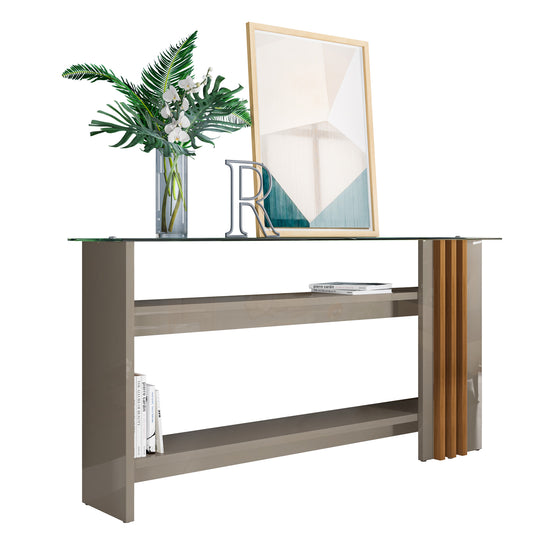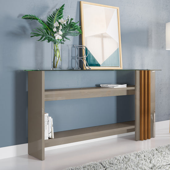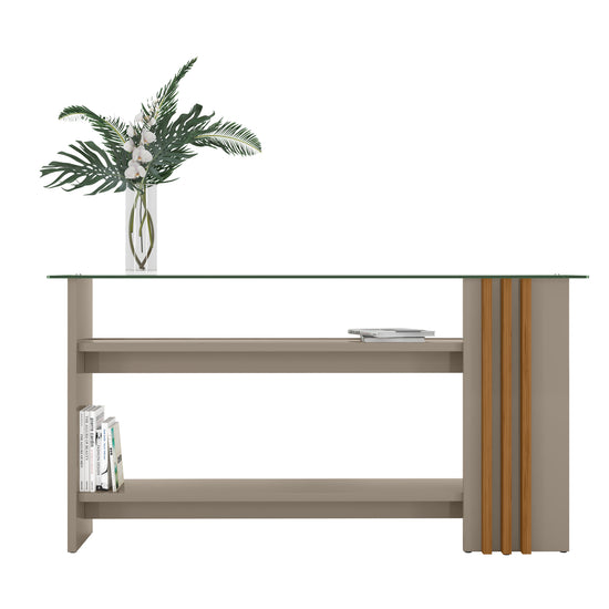 Descubre la elegancia natural con nuestra Consola Luka en tono Taupe y Natural.Fabricada con madera industrializada de pino (MDF/MDP) y acabada con pintura UV que proporciona una protección adicional contra los rayos solares y asegura su aspecto impecable durante mucho tiempo. Incluye vidrio que le da un toque moderno. Es la elección perfecta si deseas darle un toque de distinción a tu sala de estar, añadir un elemento llamativo a tu pasillo o crear un ambiente sofisticado en tu entrada.