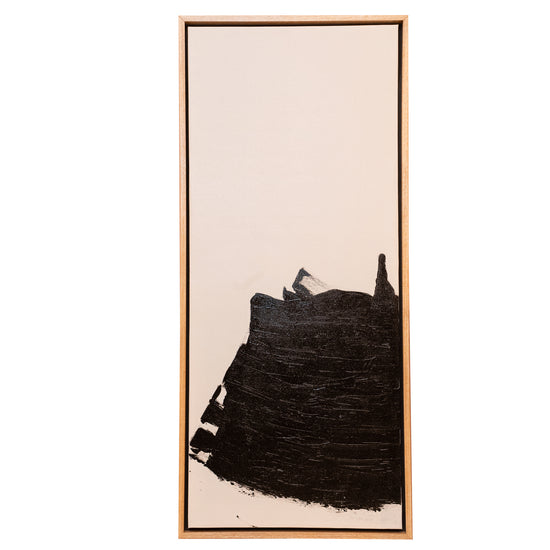 Añade un toque de sofisticación y modernidad a tu hogar con este elegante cuadro decorativo abstracto vertical. Este cuadro presenta una composición minimalista en un tono beige y negro, con un diseño abstracto que evoca formas y texturas intrigantes. La simplicidad del contraste de colores y las pinceladas texturizadas crean una atmósfera de serenidad y elegancia, perfecta para cualquier espacio.