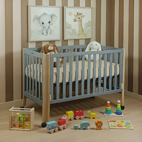 Seguridad y estilo en un diseño moderno. La Cuna Cami Gris combina una estructura sólida con detalles en madera natural que brindan calidez y durabilidad. Sus ruedas integradas facilitan la movilidad, mientras que su acabado suave crea un espacio seguro y confortable para el descanso de tu bebé. Elaborada con 100% Madera.
