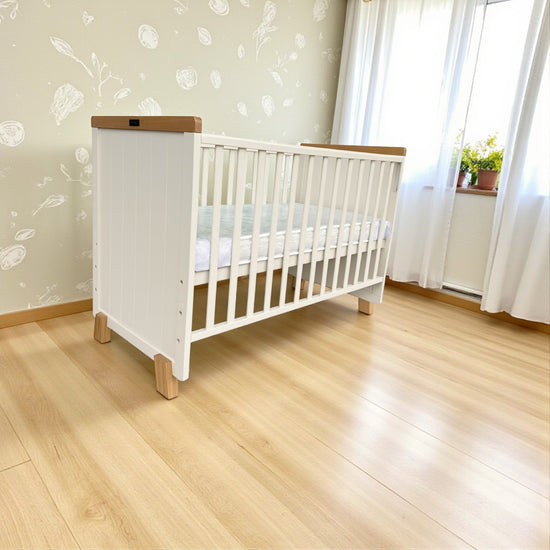 Elegancia y funcionalidad en un diseño atemporal. La Cuna Gael Off White combina un acabado limpio y luminoso con detalles en madera natural que brindan armonía visual. Perfecta para crear un ambiente sereno y seguro donde tu bebé puede descansar cómodamente.
