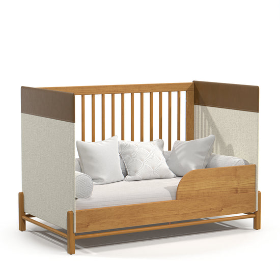 La Cuna Para Bebé TED 2 en 1 combina funcionalidad y elegancia. La pintura UV asegura durabilidad y estilo duradero. Sus patas de madera con detalles en tela eurocuero en la cabecera añaden un toque de sofisticación. Con 3 niveles de altura del colchón, se ajusta al crecimiento del bebé y se transforma en una cama junior, certificada bajo estándares internacionales de seguridad. Incluye una colchoneta de regalo para mayor conveniencia.