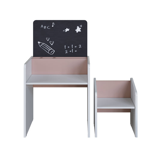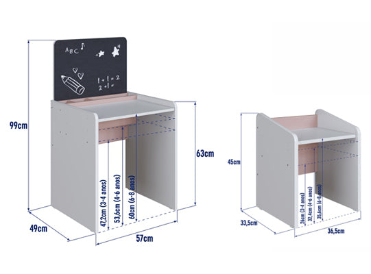 Mesa infantil con silla elaborada en materiales certificados, estructura en Mdp, acabado semimate color Blanco, pintura con alta conservación en el tiempo resistente a derrames líquidos, cuenta con pizarra para espacios para materiales como bolígrafos, libros nuestra mesa infantil es idela para el crecimiento de sus hijos. Transporte y armado gratis