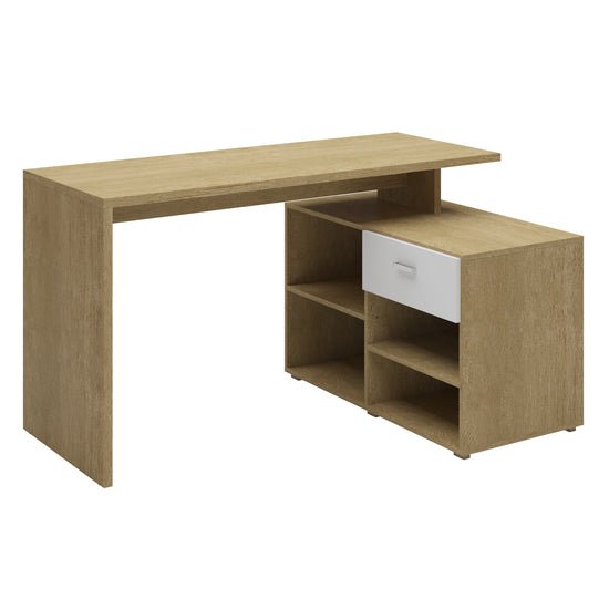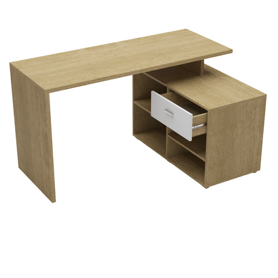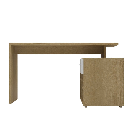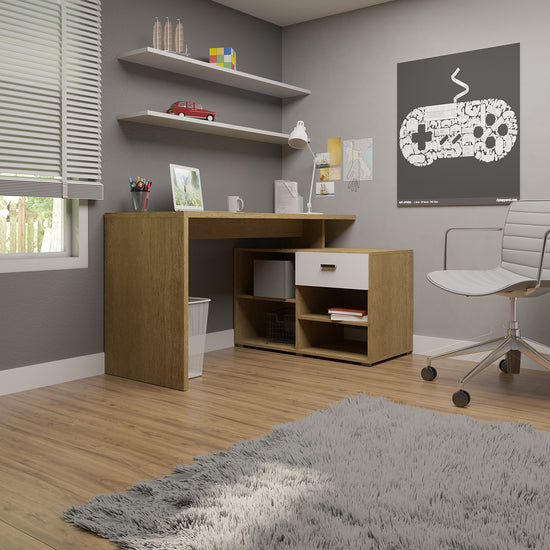 El escritorio Aero Natural en forma de L está fabricado con tablero de MDF de pino y cuenta con acabados de alta calidad en pintura UV, que conservan el color y la integridad de la pintura con el paso del tiempo. Incluye un archivador lateral con una gaveta y espacios para organizar los elementos de la oficina de manera práctica. Su diseño moderno y funcional se adapta fácilmente a cualquier estilo de decoración. Además, se ofrece el servicio de transporte y montaje sin costo adicional.