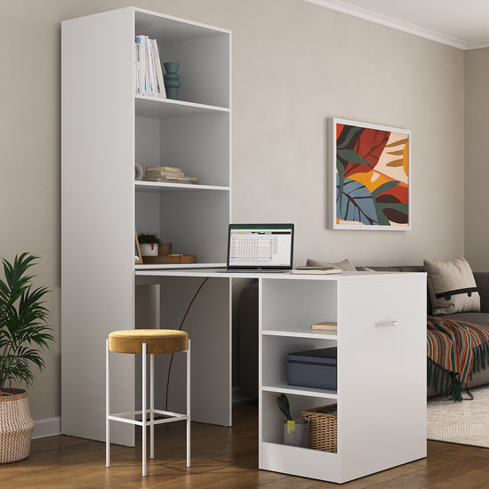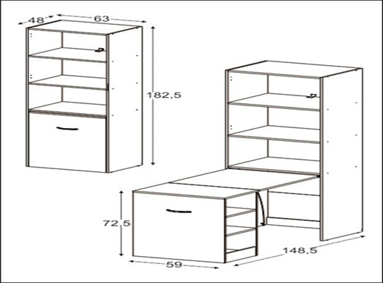 Escritorio elaborado en Madera Industrializada de Pino (MDF/MDP) con acabados de mayor calidad en UV que mantiene la pintura intacta sin perder el color en el tiempo Incluye Repisas y mesa retractil.