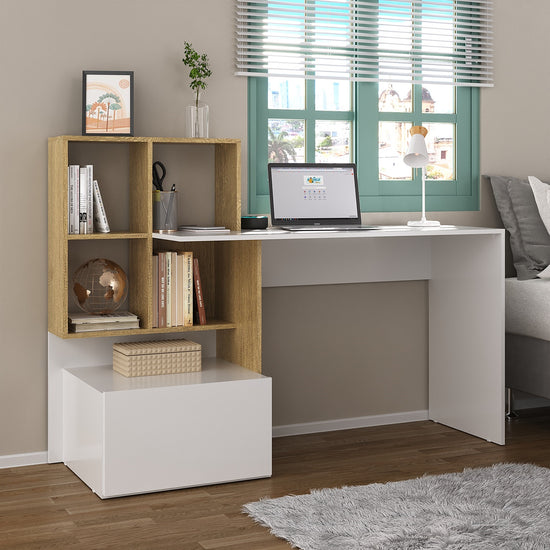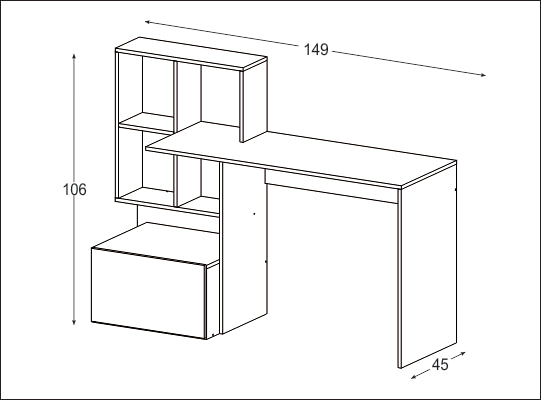 Escritorio elaborado en Madera Industrializada de Pino (MDF/MDP) con acabados de mayor calidad en UV que mantiene la pintura intacta sin perder el color en el tiempo Incluye Nichos y Cajon.