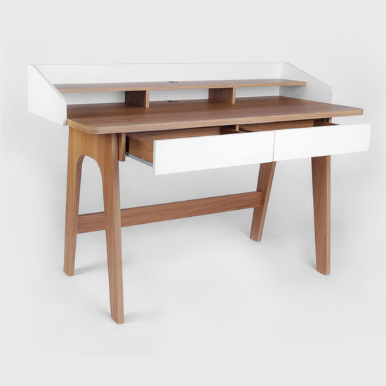 Escritorio elaborado en madera industrializada de pino MDF y acabado BP que garantiza su durabilidad y resistencia. Con dos gavetas de correderas metálicas, zapatas para estabilidad, y un hueco pasa cables integrado. Además, ofrece nichos internos y una repisa superior para mayor organización y funcionalidad. ¡Haz que tu espacio de estudio sea más eficiente y atractivo con nuestro escritorio juvenil! Transporte y armado gratis.