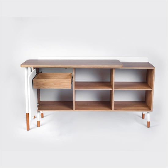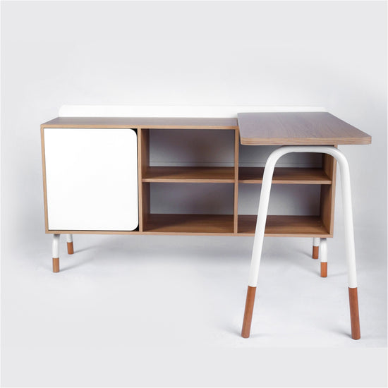 Escritorio elaborado en madera industrializada de pino MDF y acabado BP que garantiza su durabilidad y resistencia. Descubre nuestro escritorio juvenil "L" giratorio, diseñado para adaptarse a tu espacio y necesidades. Con patas de acero carbono y madera, y zapatas regulables para estabilidad. Equipado con una gaveta y puerta con bisagra amortiguada, ofrece amplio almacenamiento. Además, las repisas son removibles. ¡Montaje dinámico que permite ajustar la posición de la puerta y el cajón! Transporte y armado gratis