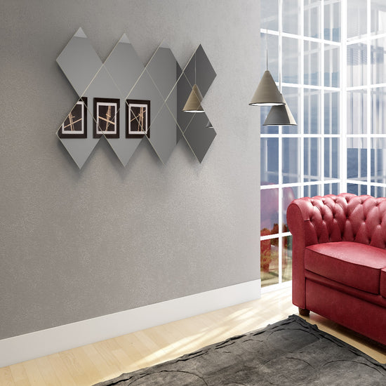 El espejo presenta una elaboración detallada en tablero de MDF de pino con acabados de alta calidad en pintura UV, asegurando una durabilidad prolongada y colores vibrantes con el paso del tiempo. Su diseño innovador, con múltiples espejos y contornos, añade un toque de elegancia y modernidad a cualquier ambiente.