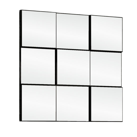 Espejo elaborado en tablero de MDF/MDP de pino, estructura en madera anti plagas color negro de fácil limpieza, pintura UV. Medidas: 75x75x5 cm.