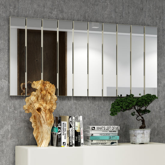 Este espejo está fabricado en tablero de MDF de pino con acabados de alta calidad en UV, asegurando que la pintura se mantenga intacta y conservando su color a lo largo del tiempo. Su diseño con múltiples espejos y contornos ofrece un toque de elegancia, modernidad y amplificación visual a cualquier espacio.