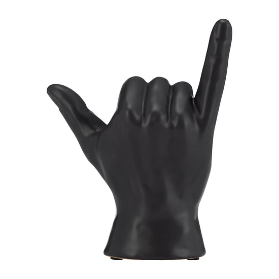 Con un acabado negro mate y un diseño distintivo, esta figura de mano en cerámica es perfecta para quienes buscan un estilo elegante y moderno. Su forma estilizada y la expresión única en el gesto de la mano aportan carácter y sofisticación a cualquier rincón de tu hogar, complementando la decoración con un toque de distinción.