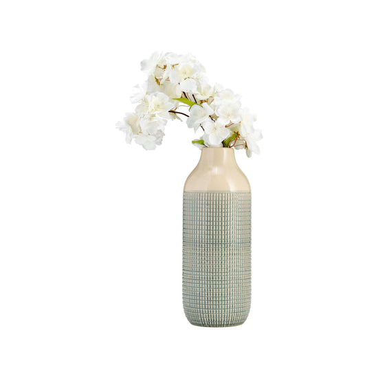 Este Jarrón 30X13 Verde Azul combina la suavidad del color verde con detalles geométricos que aportan textura y profundidad a su diseño. Con su forma estilizada y el acabado brillante, este jarrón es una pieza decorativa elegante y moderna que complementa perfectamente cualquier estilo de decoración.
