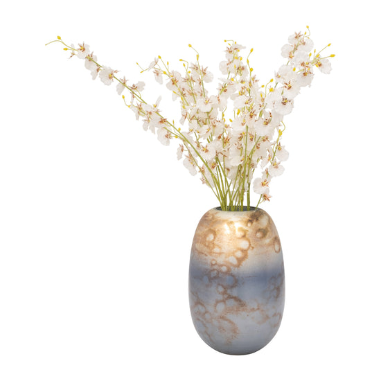 El Jarrón 36X20 Dorado Claro es una pieza única que aporta un toque elegante y sofisticado a cualquier espacio. Su diseño de forma ovalada con acabados en dorado claro y tonalidades sutiles crea una apariencia moderna y artística. Perfecto para decorar mesas, estanterías o como centro de atención en cualquier habitación